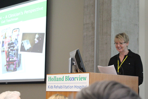 Gail Teachman, the clinician panelist, focused on the tension within the clinician’s role – searching for new and improved technologies that might open a new avenue of communication or social participation, but weighing these options against the learning curve and additional burden that a new technology might place on a child and their family.