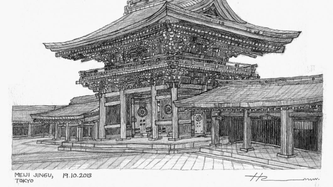 Parents: Hanzhen will take photographs of the object from many different angles and then he will select the angle that he prefers to sketch. In the case of a building, the ideal situation is when he is able to visit the site and spend some time there to absorb the atmosphere and the feel of the place before he starts on his drawing.