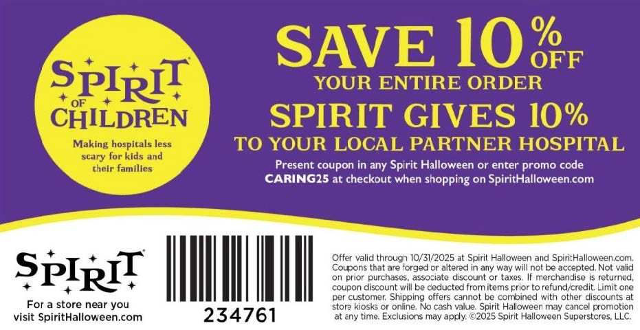 Save 10% and donate 10% when you shop at select Spirit Halloween stores in support of Holland Bloorview.